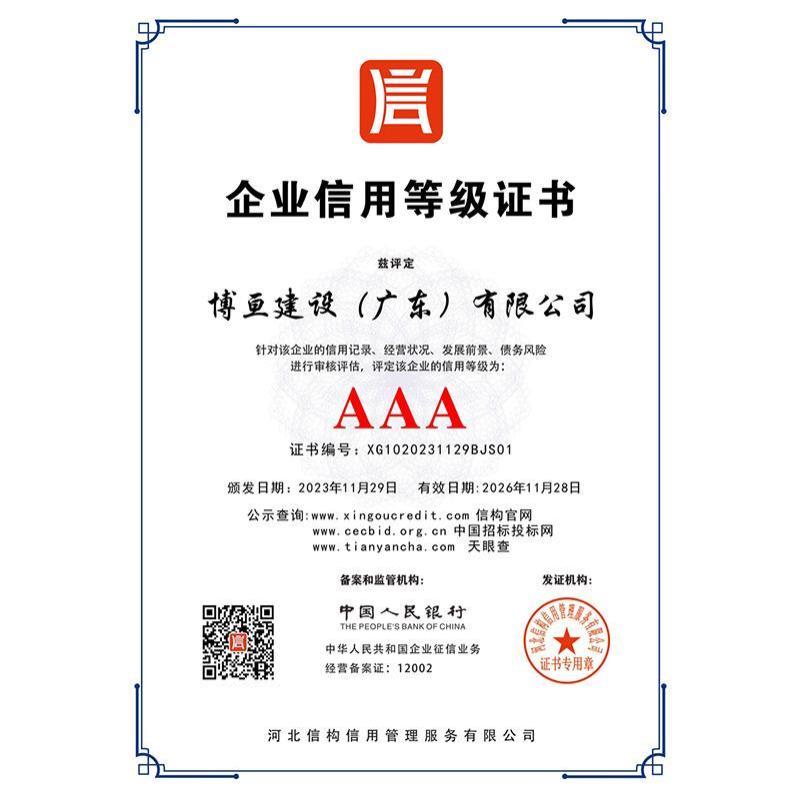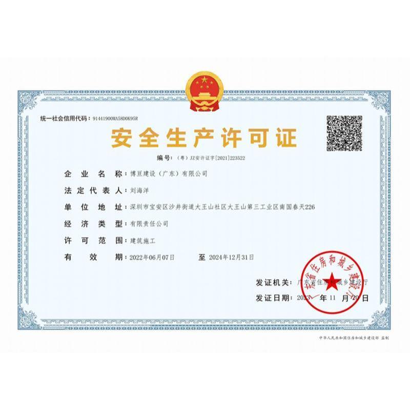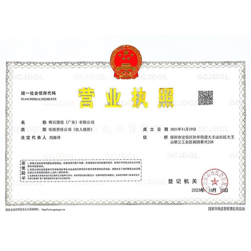 博亘建设(广东)有限公司是综合性建筑施工企业,公司于2021 年在深圳市市场监督管理局注册成立,注册资金为人民币壹拾伍亿壹仟玖佰壹拾壹万元(151911 万元)。博亘建设(广东)有限公司主要从事土石方工程施工;建筑装修装饰工程;电子与智能化工程;消防设施工程;防水防腐保温工程;园林绿化工程施工;建筑物清洁服务;劳务分包等经营项目。